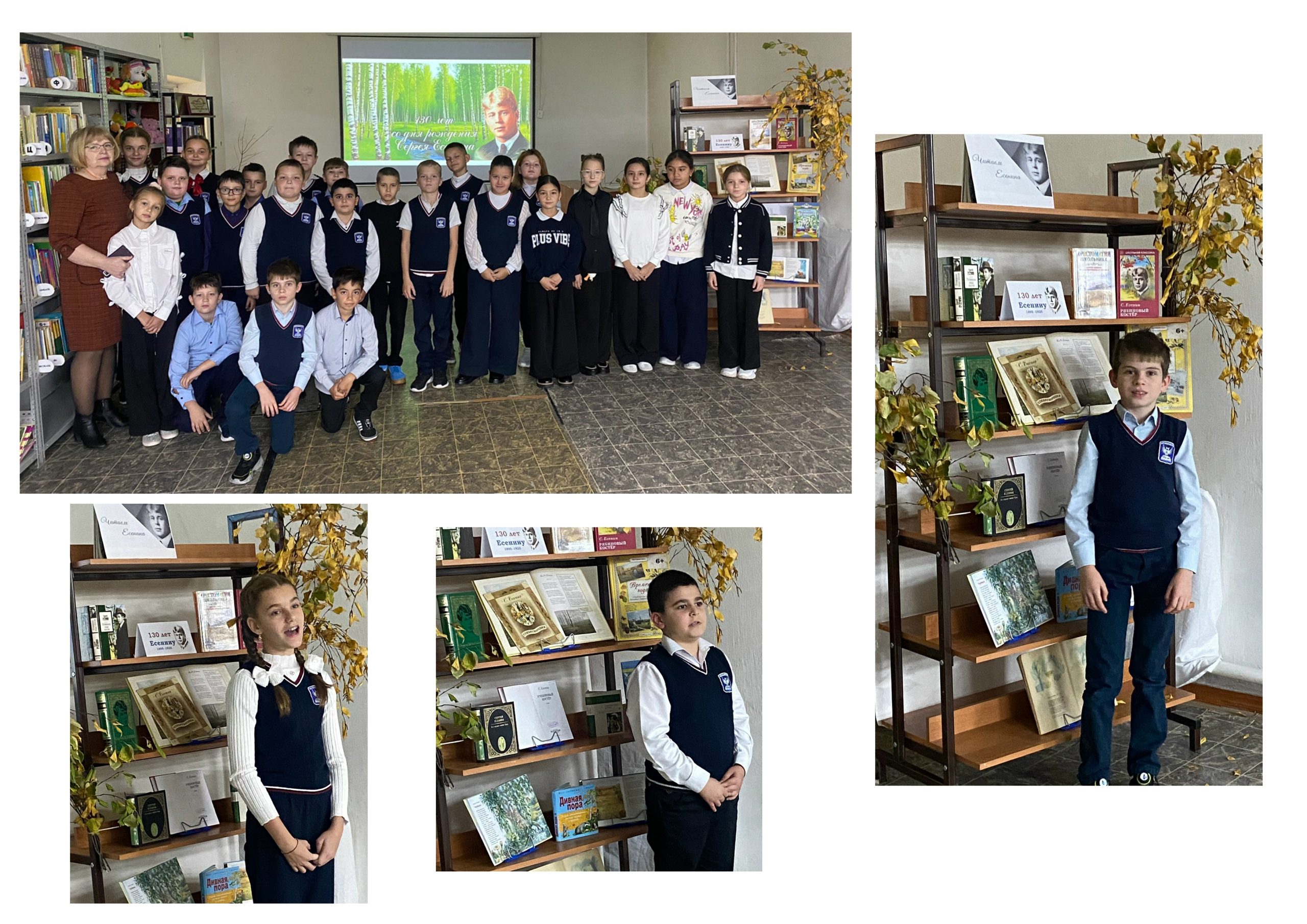 Библиотекарь рассказала учащимся 4 класса Коченёвской школы № 1 им. Героя Советского Союза Аргунова Н. Ф. (классный руководитель Н. И. Форат) о жизни и творчестве поэта, о главных темах его поэзии: теме родной природы, дружбы и многих других. В исполнении ребят прозвучали такие стихи, как «Белая береза», «Русь», «Закружилась листва золотая», «Отговорила роща». Все ребята читали стихи очень выразительно!