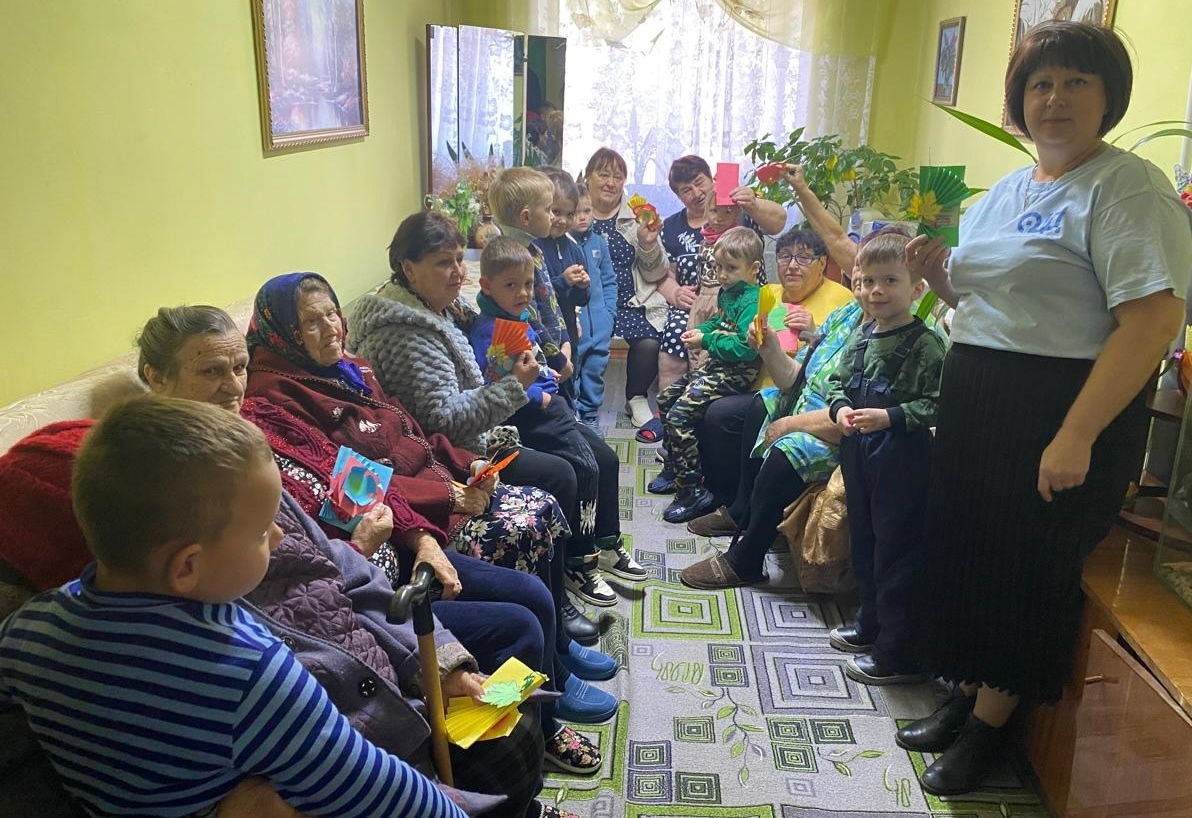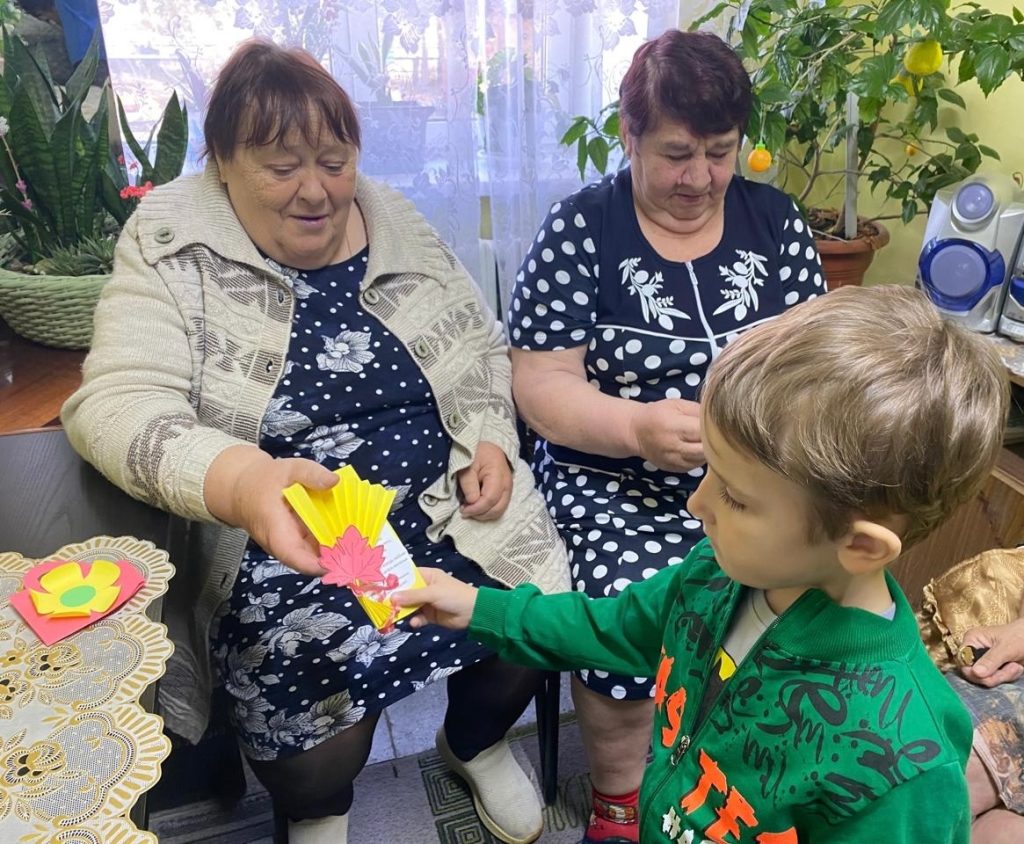 С пожеланиями здоровья и счастья дошколята с радостью вручили свои приятные подарочки бабушкам и дедушкам Дома ветеранов Коченёвского района.