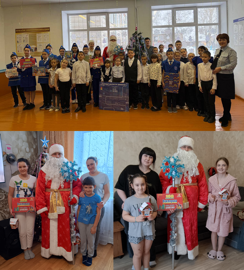 В преддверии новогодних праздников полицейский Дед Мороз побывал в гостях в Речниковской школе, где вместе с отрядом ЮИД «Патруль» и их руководителем Натальей Цветковой провёл агитационно-познавательное выступление под девизом «Безопасные каникулы», напомнив ребятам об основных правилах безопасного поведения на дорогах.