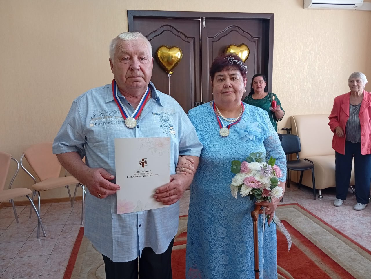 По сложившейся традиции в честь памятного события супруги Ражновы поставили свои подписи в книге почётных юбиляров Коченёвского района. Начальник отдела ЗАГС Светлана Вагнер поздравила виновников торжества и вручила им памятное свидетельство о регистрации «золотого» юбилея, а также передала юбилярам памятный подарок по поручению Главы района Евгения Антипова.