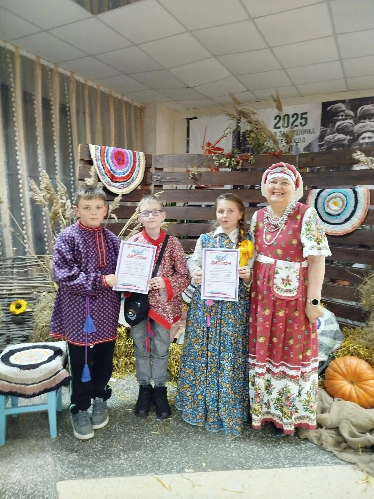 Анастасия Фетисова, Андрей Медведев, Богдан Брыкин со своим руководителем Натальей Шалиной в весёлом хороводе показали основы игры с куклами, давая возможность всем приобщиться к русской культуре. Дети были в восторге и от игры, и от самих народных костюмов, в которые они были облачены.