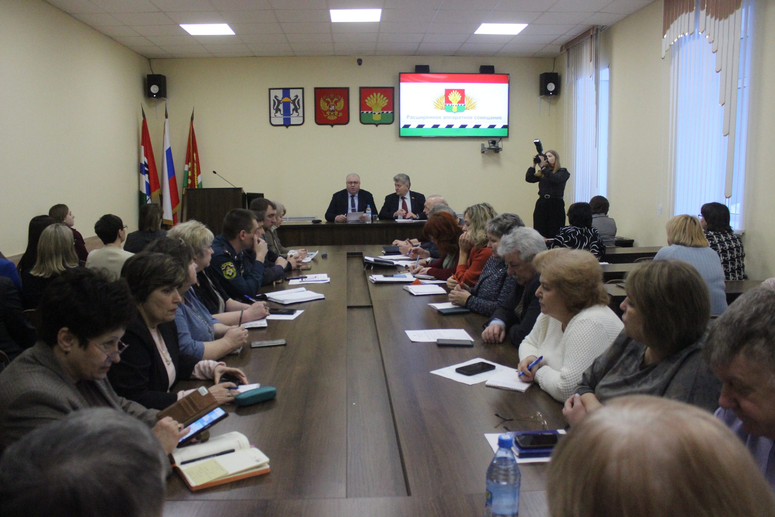 Сегодня в зале заседаний Управления образования под руководством Главы Коченёвского района Евгения Антипова состоялось расширенное аппаратное совещание с участием председателя районного Совета депутатов Владимира Головченко, глав муниципальных образований и руководителей структурных подразделений. Было рассмотрено два вопроса.