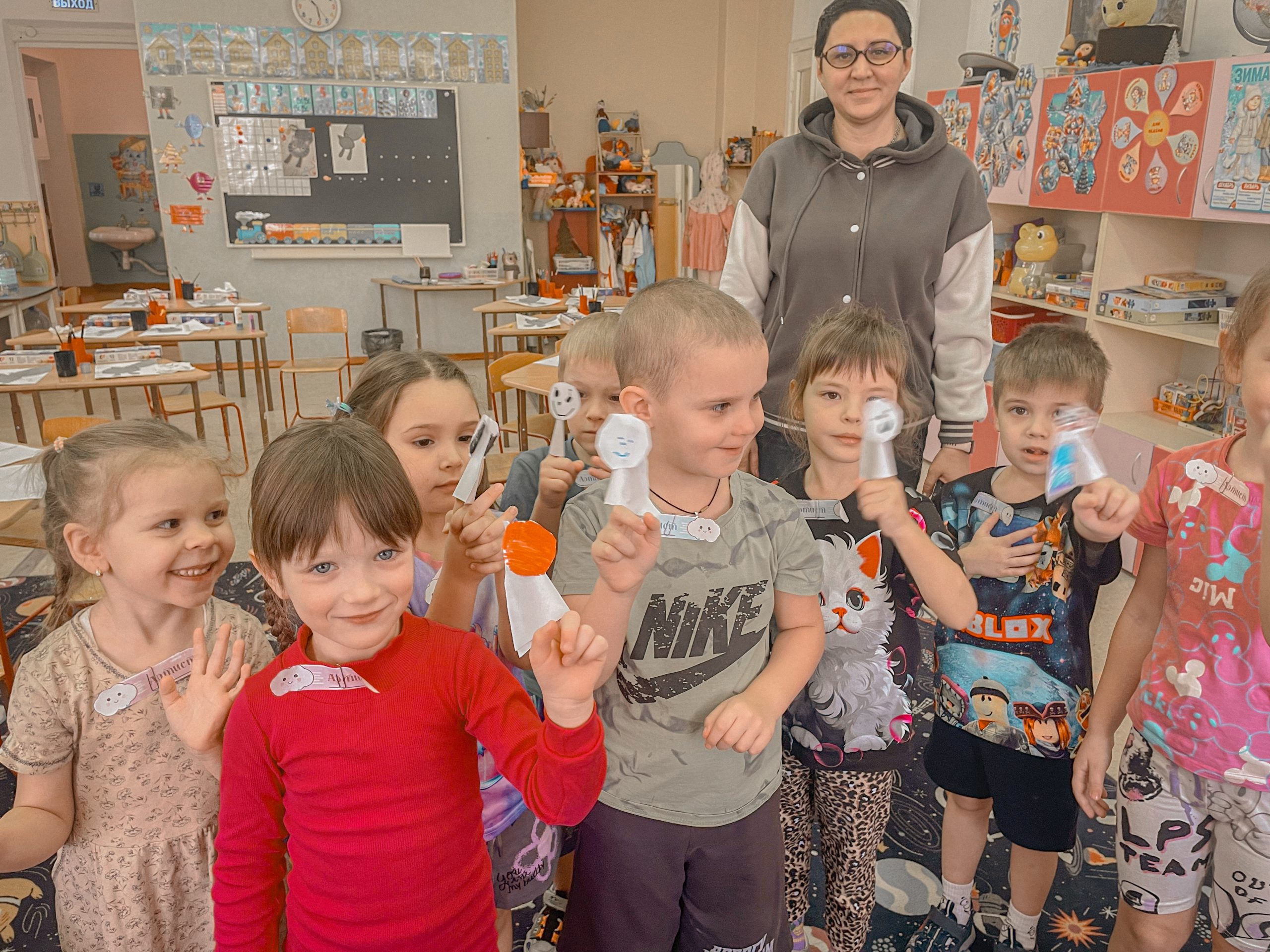 В конце мероприятия, воодушевлённые примером, с особым усердием и фантазией ребята изготовили бумажных пальчиковых кукол, которых украсили и раскрасили. Таким образом финалом стала не точка, а многоточие: каждый унёс с собой не только воспоминания, но и главный инструмент для продолжения игры – собственную куклу.