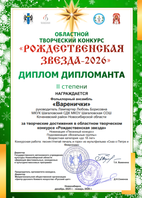 В самом начале наступившего 2026 года прошёл ежегодный областной творческий конкурс «Рождественская звезда»–2026, в котором организационный комитет и конкурсная комиссия определили множество победителей, дипломантов, и участников конкурса. На конкурс было представлено более 800 работ из всех районов Новосибирской области.