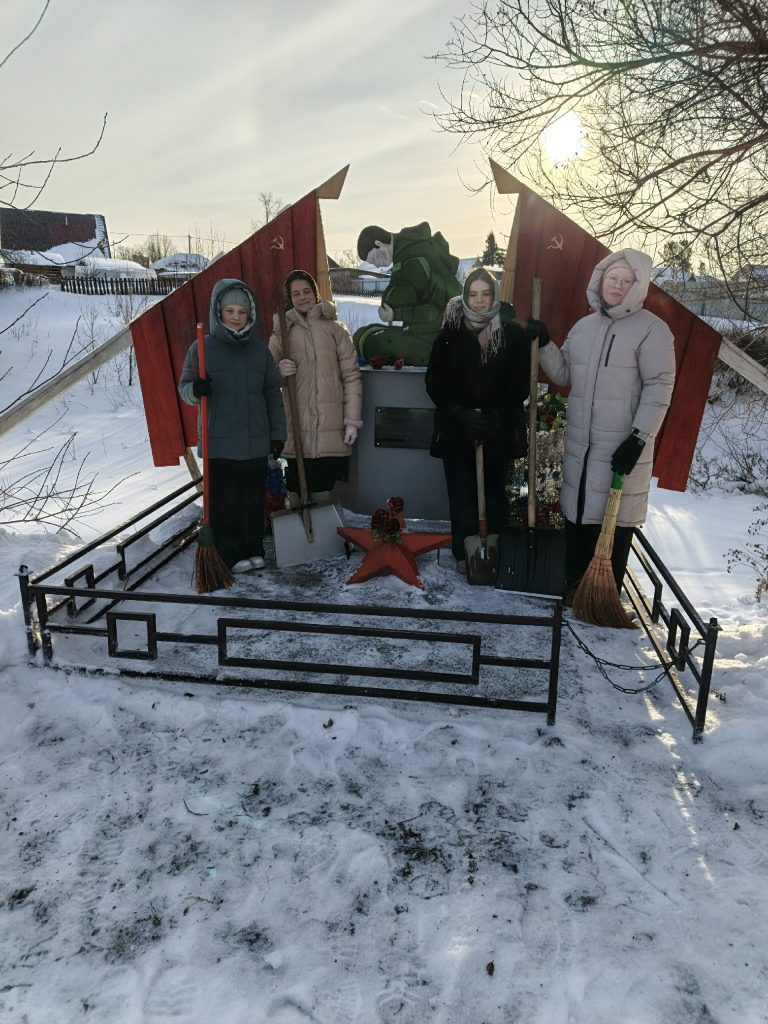 В преддверии Дня защитника Отечества волонтёрский отряд «Помощники» Центра традиционной культуры «Сибирский Дом» занялся важным делом: под руководством Ирины Баннов убрали снег у памятника воинам Великой Отечественной войны на улице Логовской в селе Прокудское.