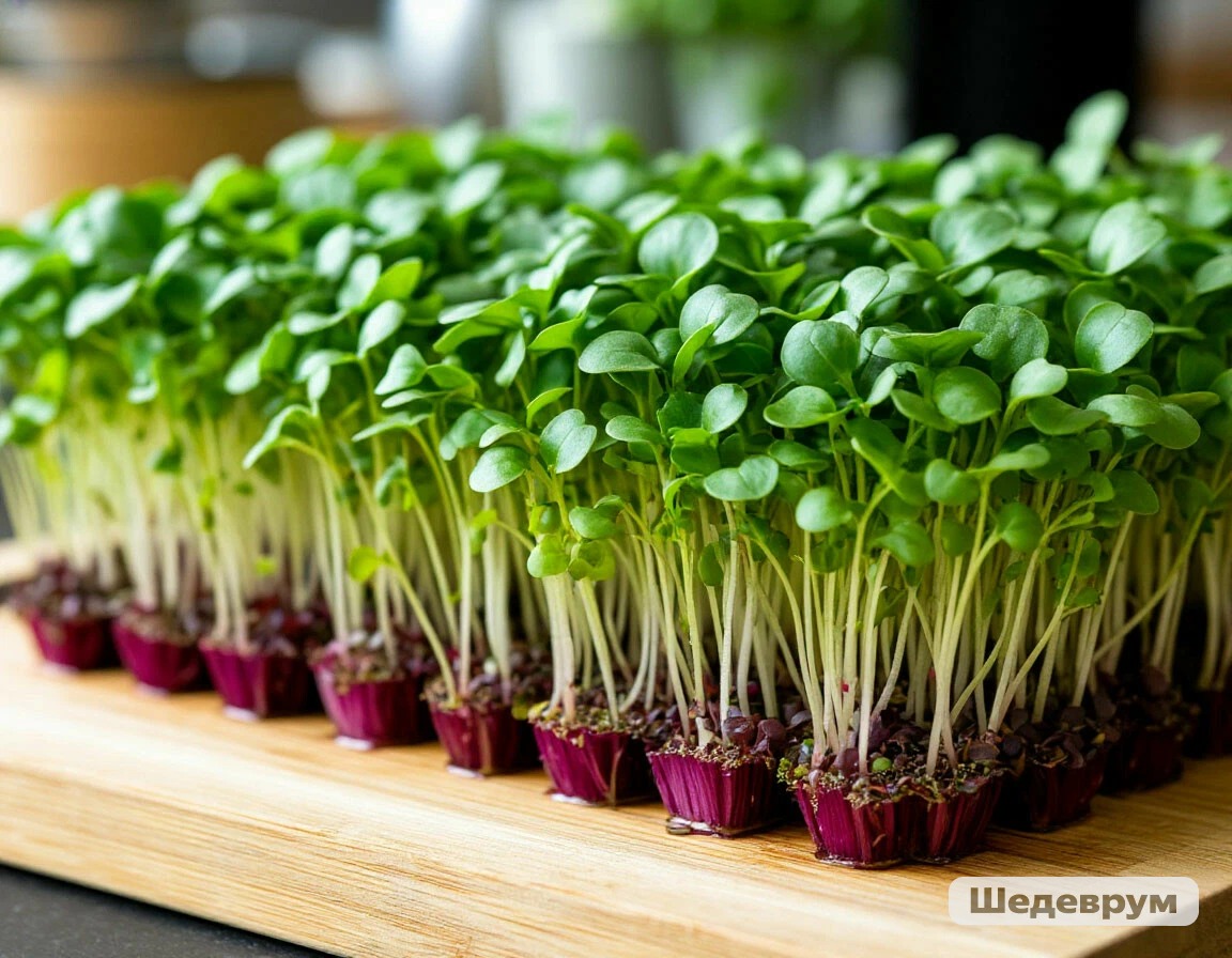 Самые быстрые культуры для получения зелени – редис, подсолнечник и горох, универсальные – брокколи, кресс-салат и горчица, яркие – свёкла и амарант. Важно не переращивать, чтобы зелень не потеряла свои вкусовые и питательные качества, и использовать сразу после срезки.